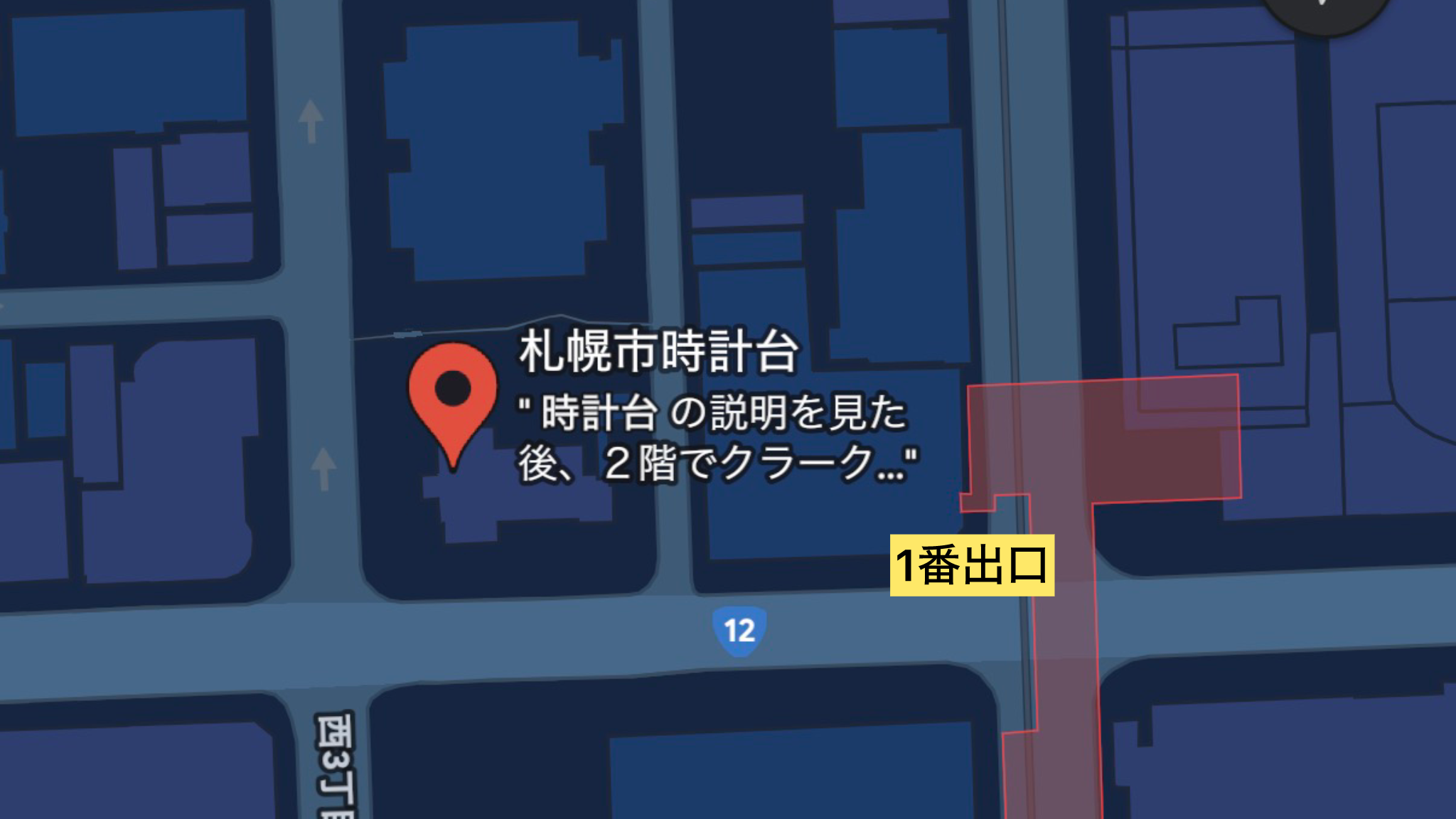 ② 難関「時計台」は【西2丁目地下歩道】が正解