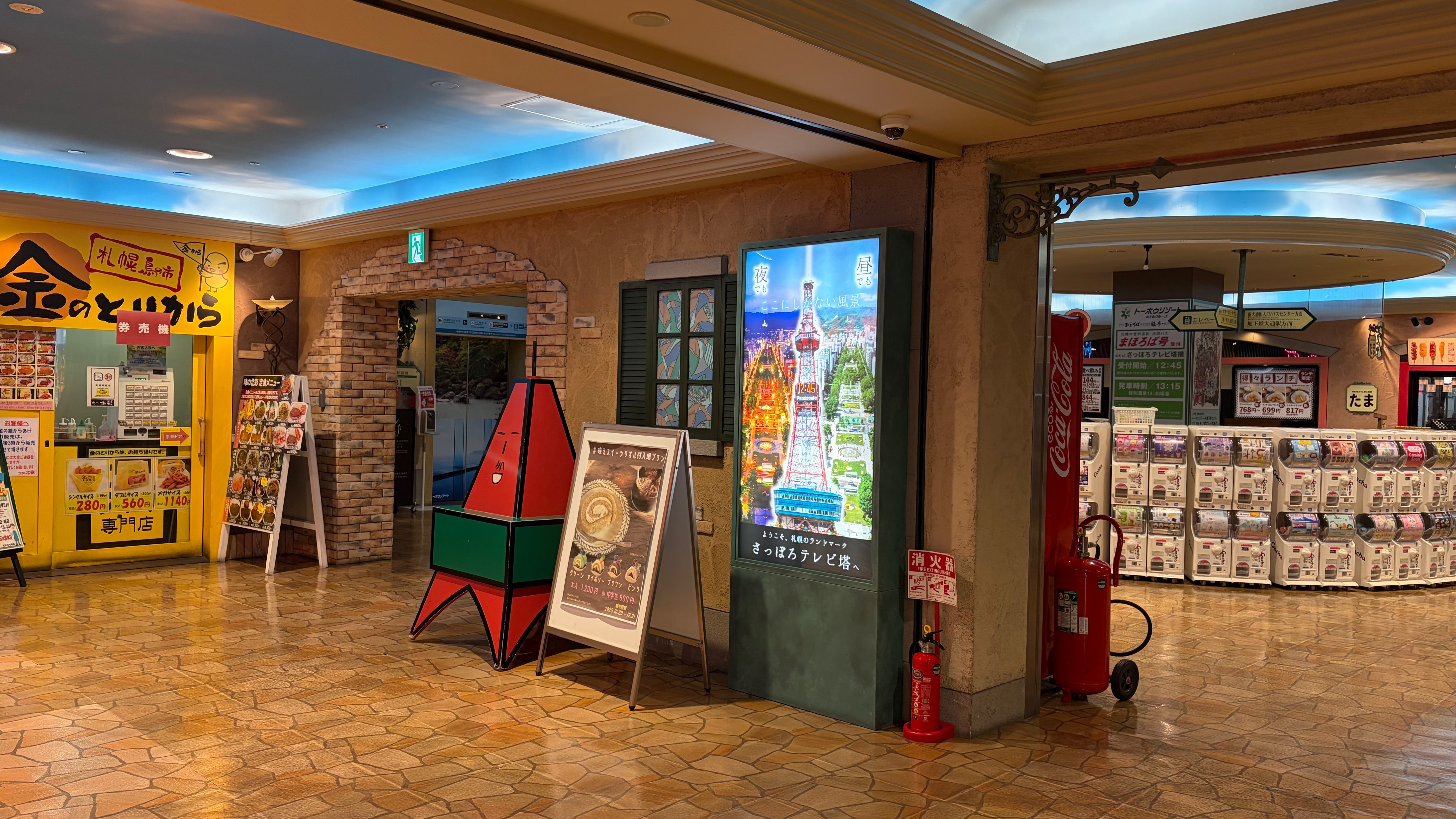 空港からバスを使えばテレビ塔の前まで行けますが、地下ルートなら寒さ知らずです。